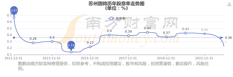 近年蘇州固锝年度股息率走勢(shì)如下圖: