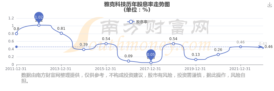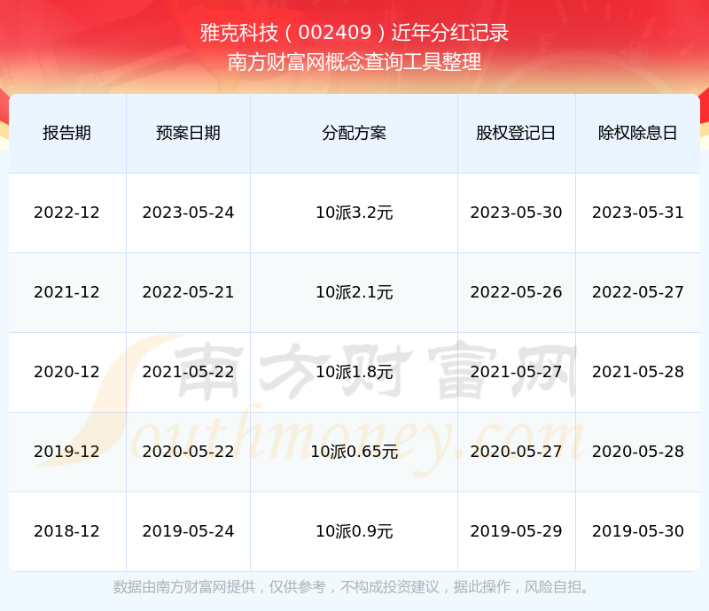 雅克科技最新一次公布的分紅方案:10派3.2元。