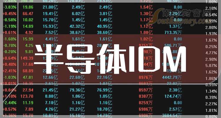 據(jù)南方財富網(wǎng)概念查詢工具數(shù)據(jù)顯示,半導(dǎo)體IDM概念股龍頭有: