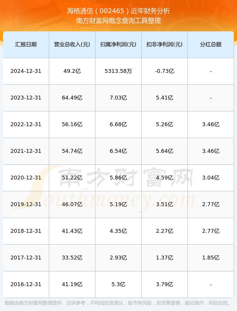 海格通信公司2024年實現(xiàn)營收49.2億元,凈利潤5313.58萬元,毛利率28.79%。