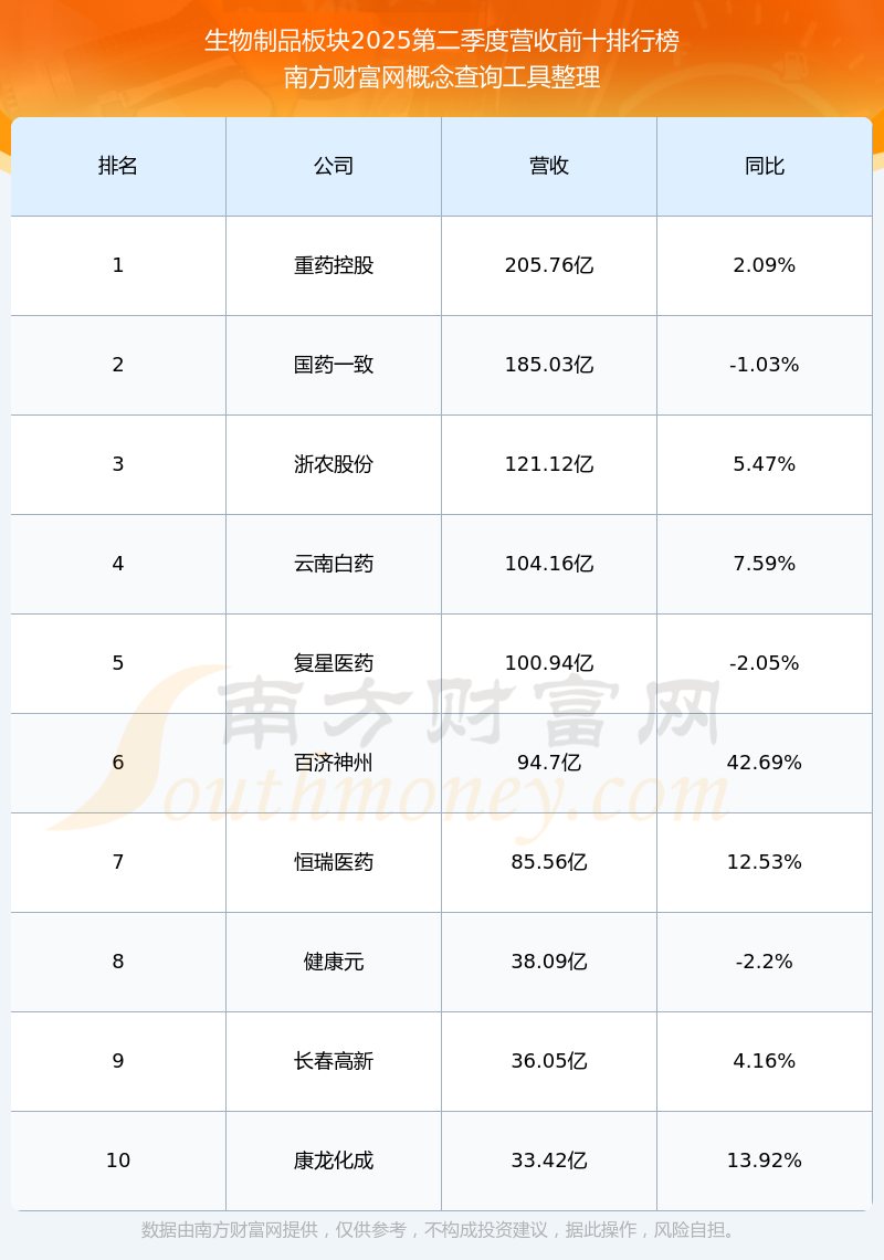 按照南方財富網(wǎng)概念查詢工具統(tǒng)計,該股所屬板塊為生物制品板塊,該板塊共有154只股票,百利天恒2025第二季度營收在該板塊中排名為第115名,該板塊2025第二季度營收排名前十的股票如下表: