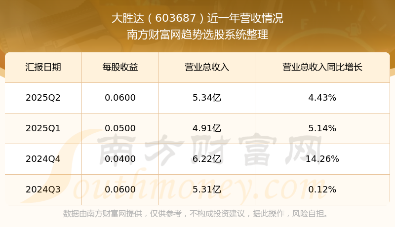 一、大勝達(dá)(603687)股票營(yíng)收情況