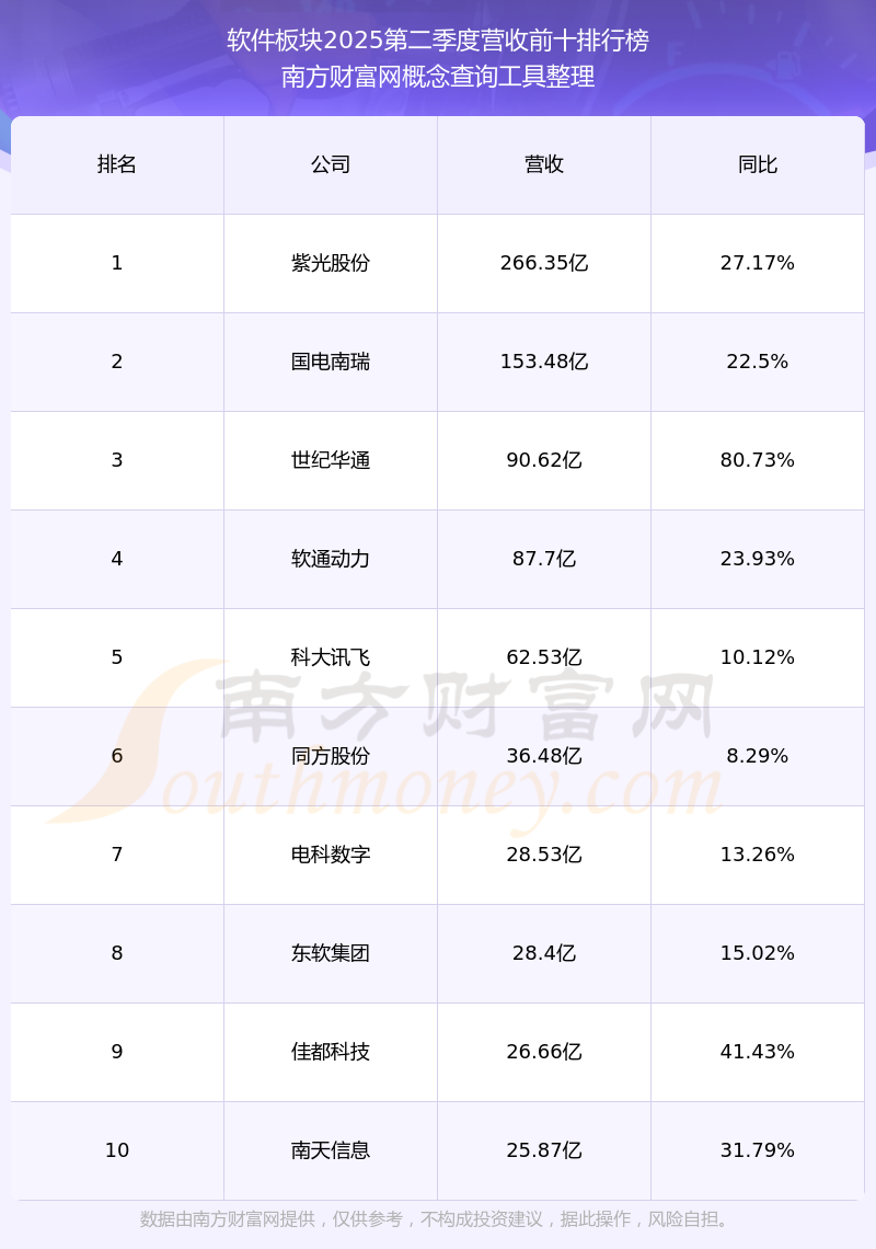 按照南方財富網(wǎng)概念查詢工具統(tǒng)計,該股所屬板塊為軟件板塊,該板塊共有246只股票,山石網(wǎng)科2025第二季度營收在該板塊中排名為第123名,該板塊2025第二季度營收排名前十的股票如下表: