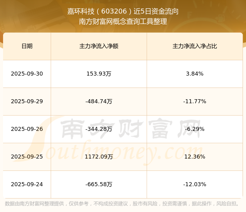 二、嘉環(huán)科技(603206)近期盤面、資金面情況