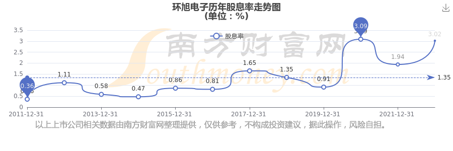 環(huán)旭電子歷年股息率走勢如下圖: