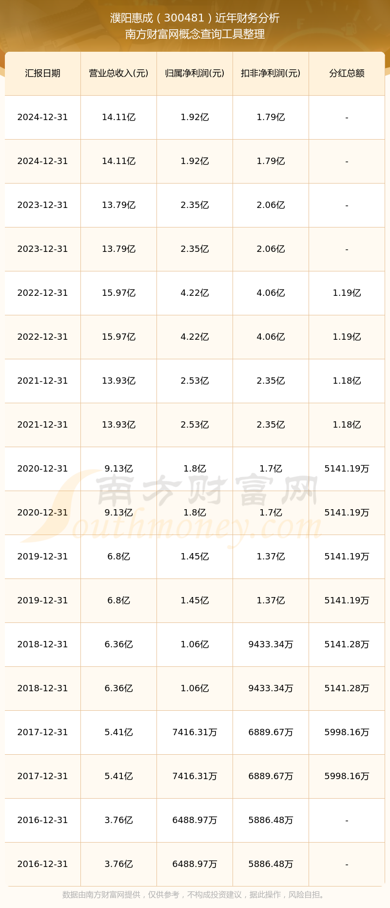 濮陽惠成300481分紅時間: