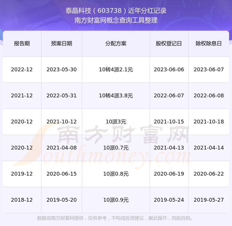 一、泰晶科技(603738)股票分紅記錄