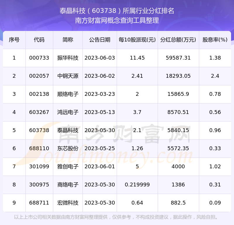 二、泰晶科技603738行業(yè)分紅排名