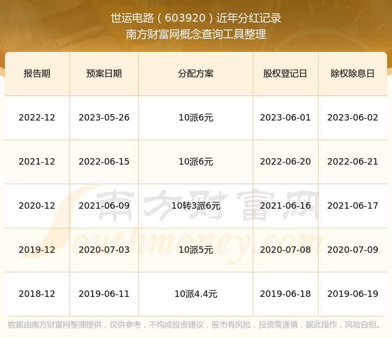 世運(yùn)電路歷年分紅派息情況如下表所示:
