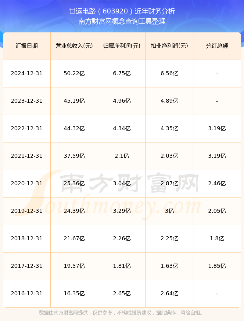 世運(yùn)電路公司2024年實(shí)現(xiàn)營業(yè)收入50.22億元,同比增長11.13%;凈利潤6.75億元,同比增長36.17%;毛利率23.09%。