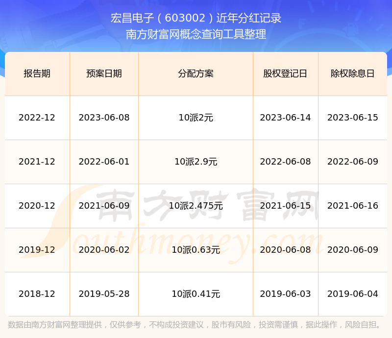 一、宏昌電子(603002)股票分紅記錄