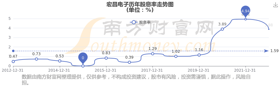 近年宏昌電子分紅情況如下表所示: