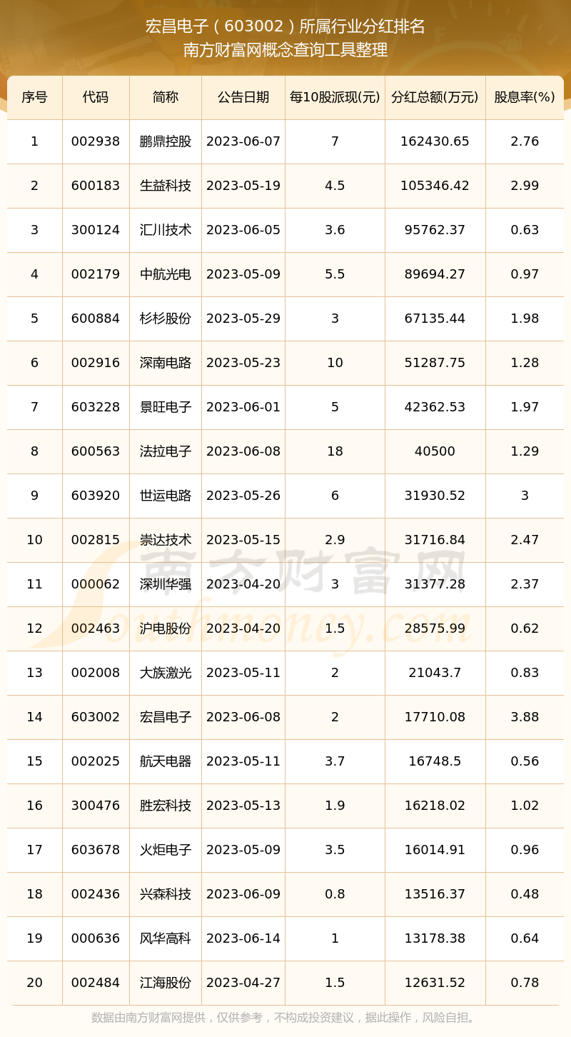 二、宏昌電子603002行業(yè)分紅排名