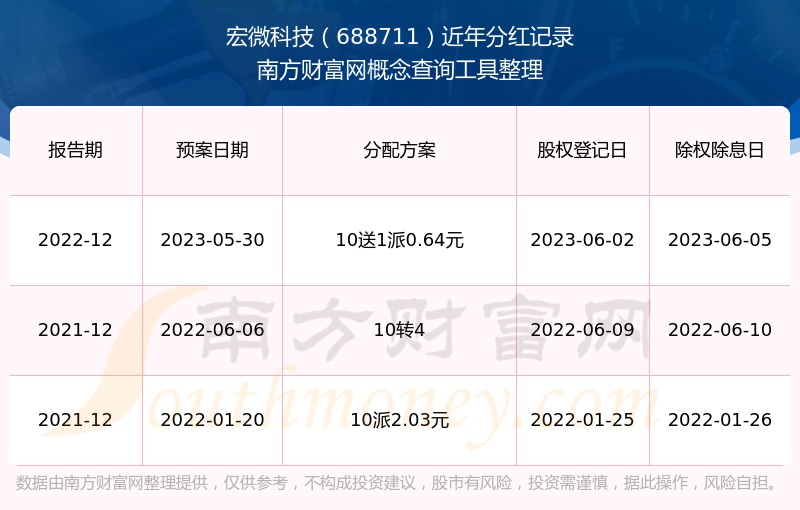 一、宏微科技(688711)股票分紅記錄