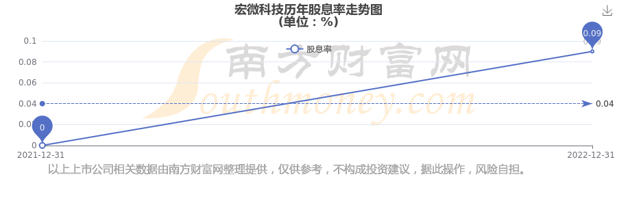 近年宏微科技年度股息率走勢如下圖: