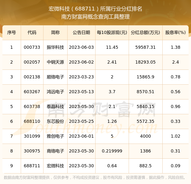 二、宏微科技688711行業(yè)分紅排名