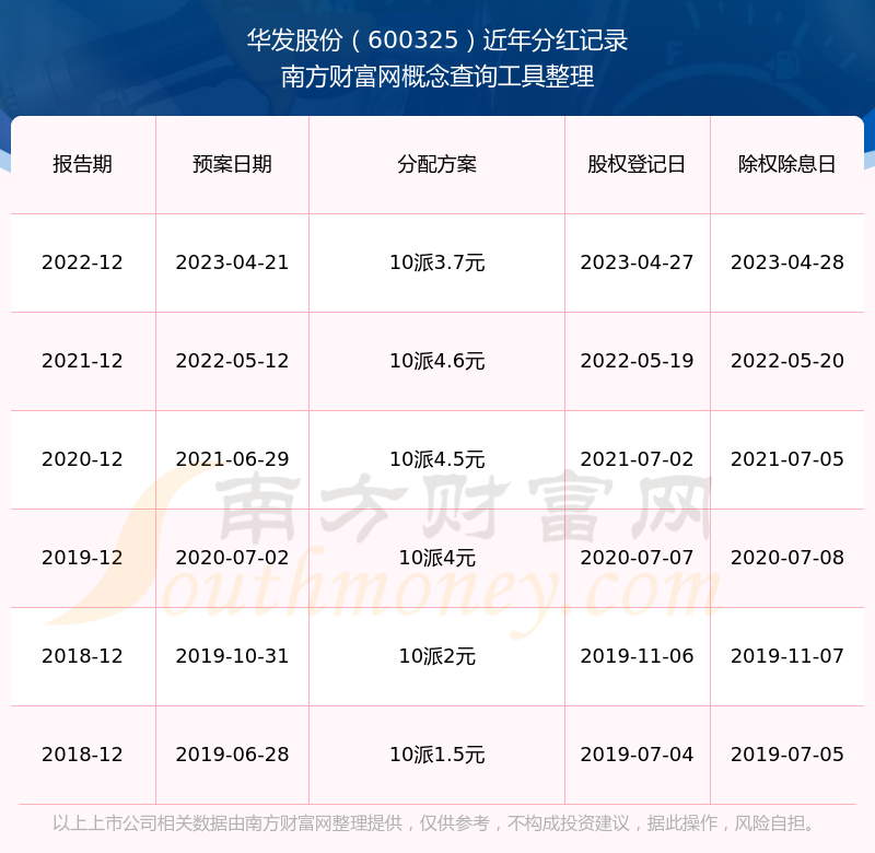 華發(fā)股份歷年分紅派息情況如下表所示: