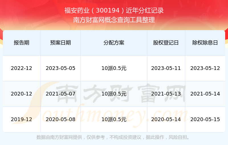 福安藥業(yè)最新一次公布的分紅方案:10派0.5元。
