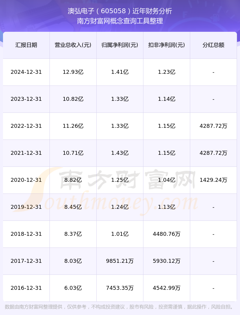 2024年澳弘電子總營收12.93億,同比增長19.45%;凈利潤1.41億,同比增長6.45%;銷售毛利率21.99%。