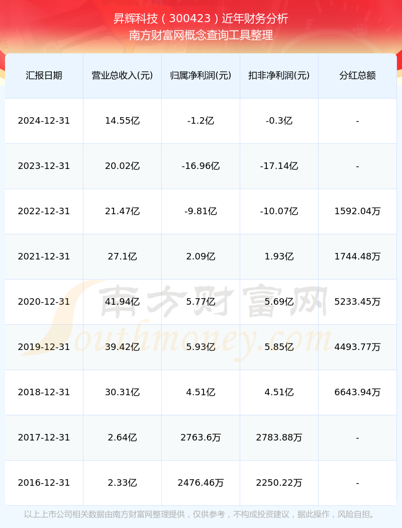 昇輝科技?xì)v年分紅派息情況如下表所示: