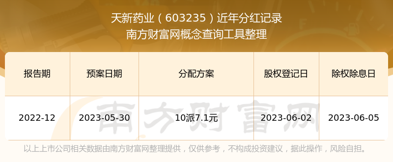 天新藥業(yè)最新一次公布的分紅方案:10派7.1元。