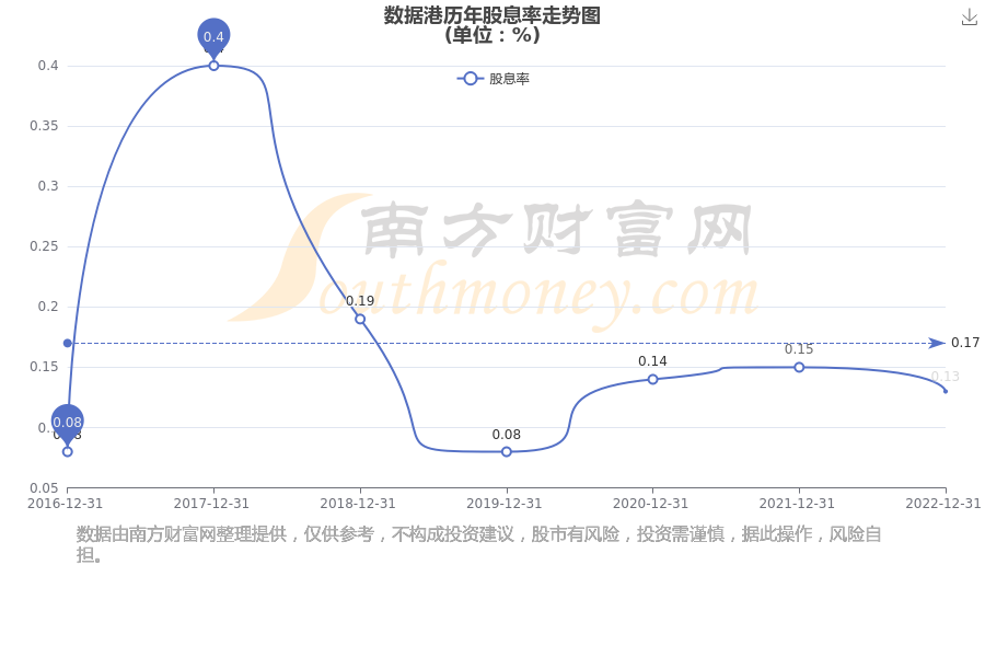數(shù)據(jù)港歷年股息率走勢如下圖: