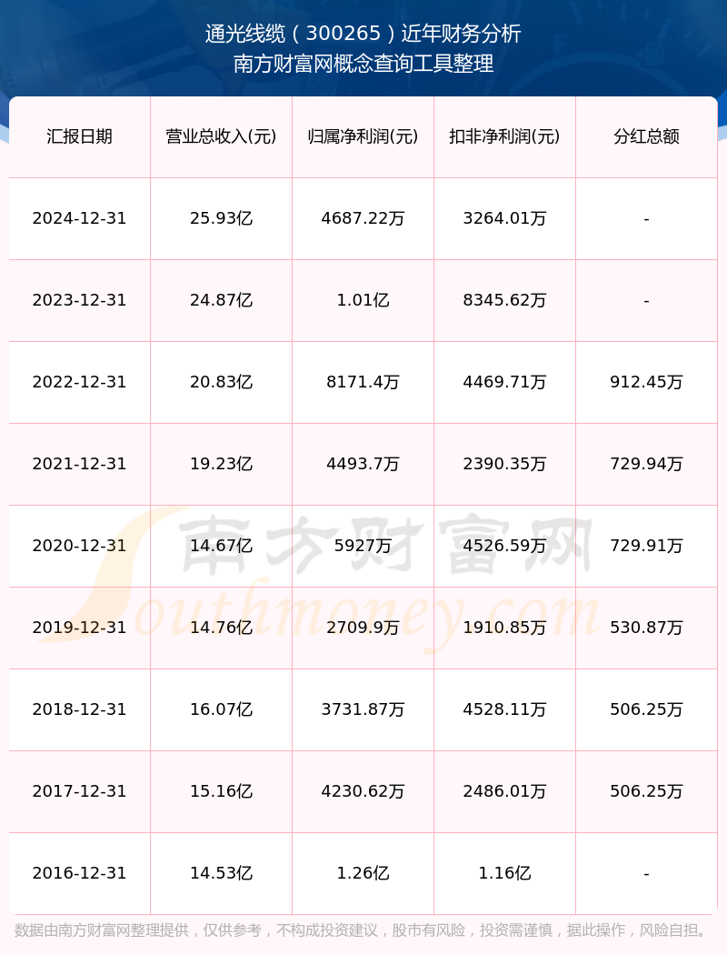 近年通光線纜分紅派息情況如下表所示: