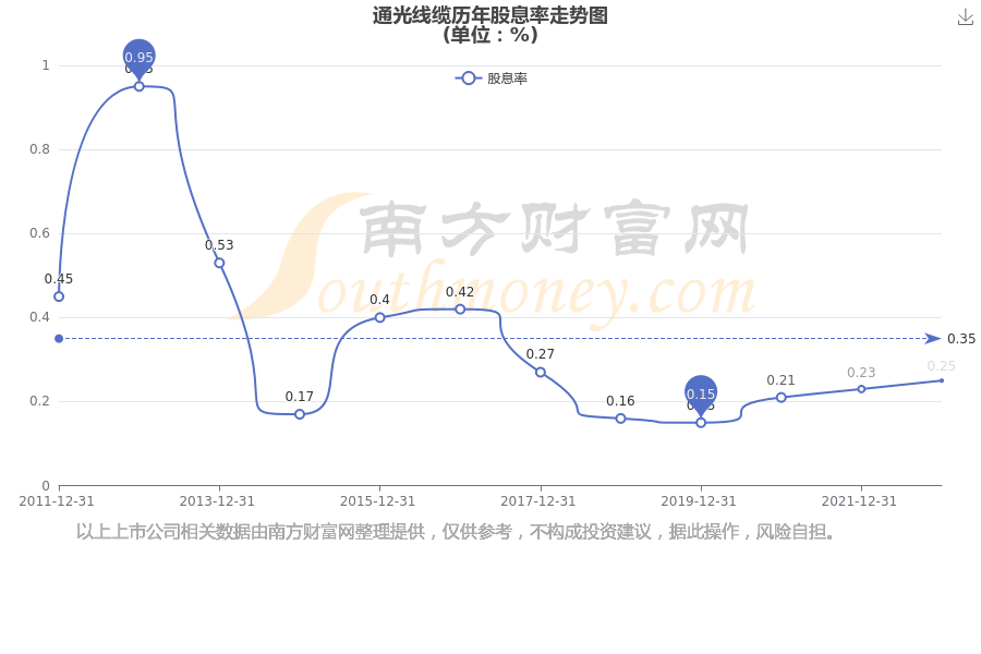 通光線纜歷年股息率走勢(shì)如下圖: