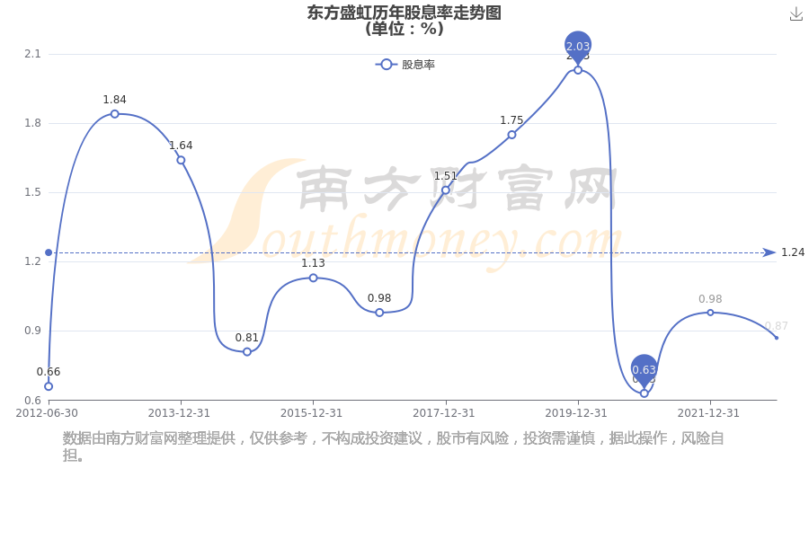東方盛虹歷年股息率走勢(shì)如下圖: