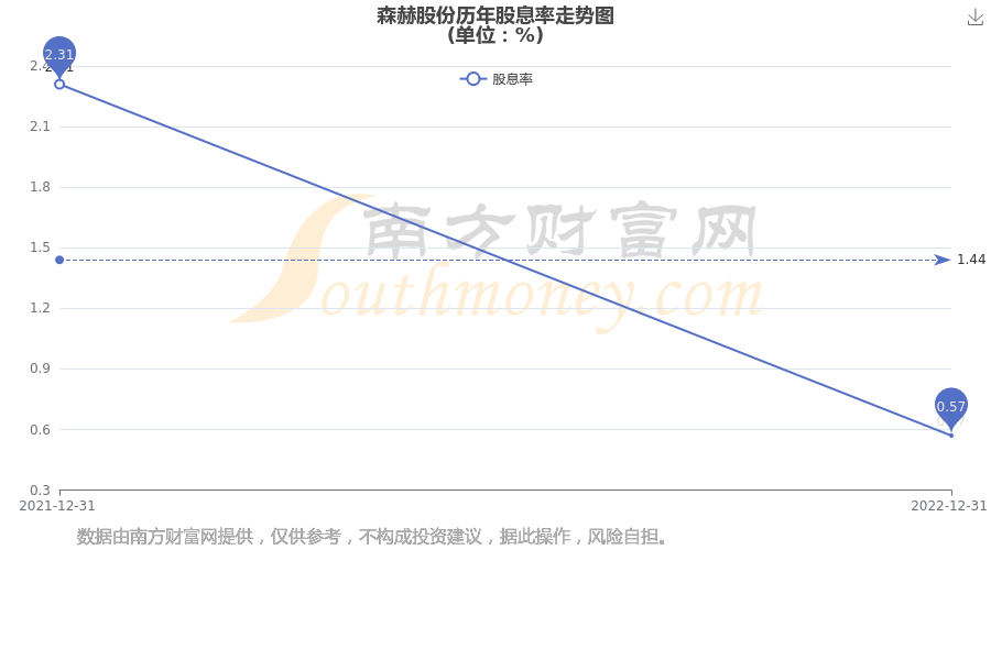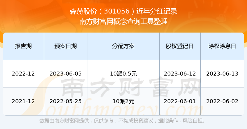 森赫股份最新一次公布的分紅方案:10派0.5元。
