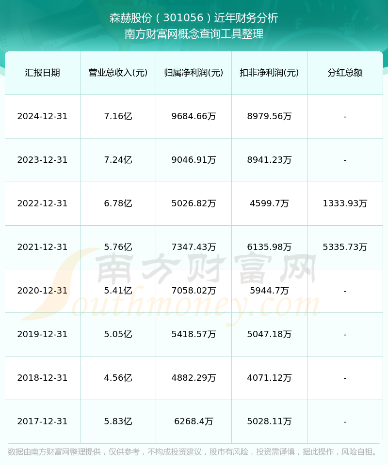 森赫股份公司2024年實(shí)現(xiàn)營收7.16億元,凈利潤9684.66萬元,毛利率33.09%。