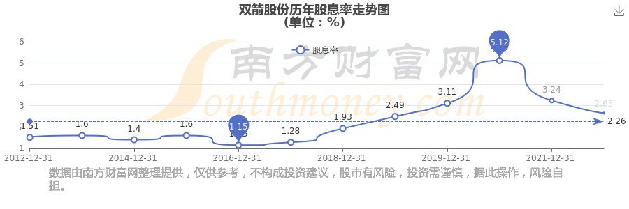 雙箭股份歷年股息率走勢(shì)如下圖: