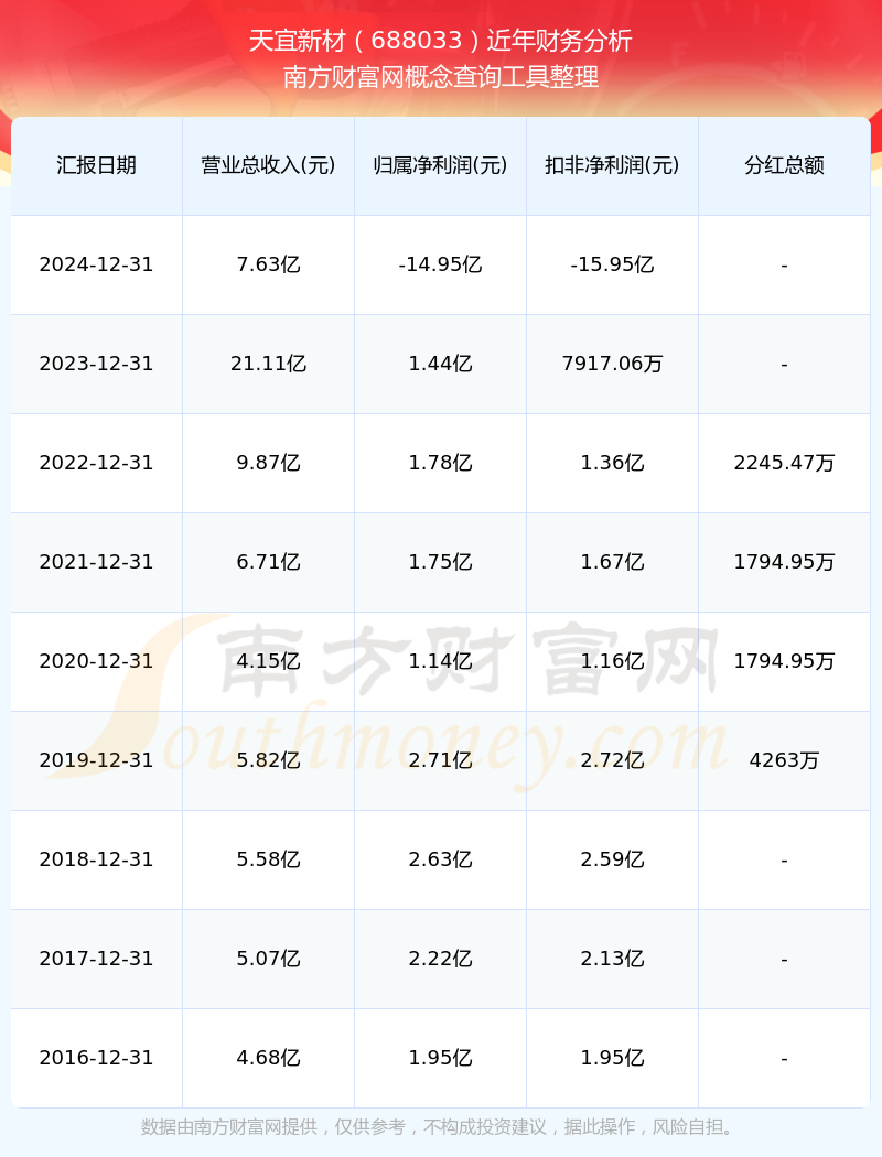 天宜新材最新一次公布的分紅方案:10派0.4元。