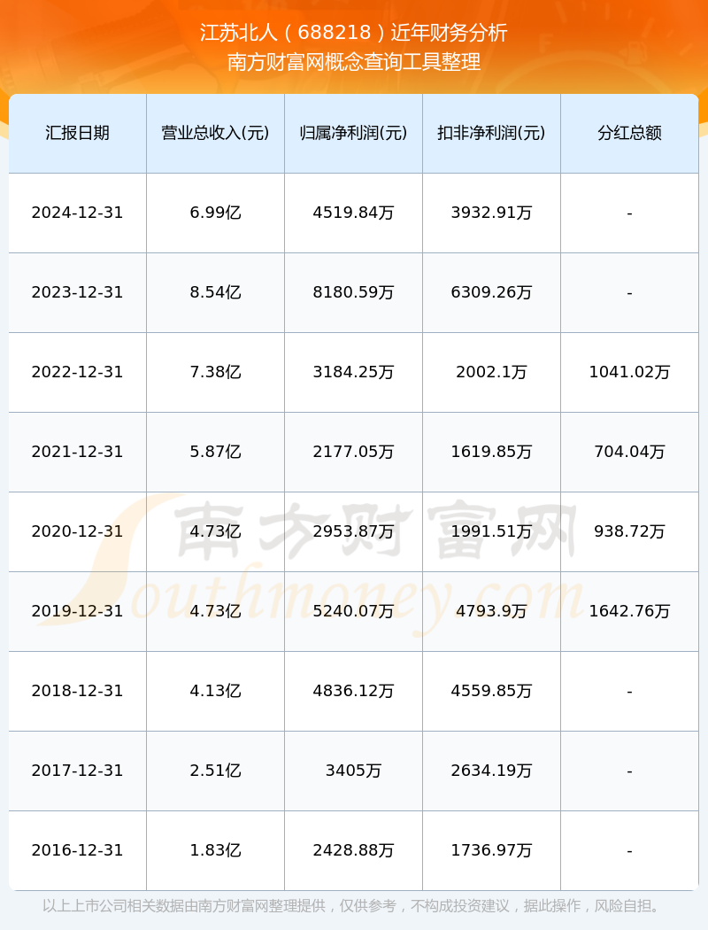 2024年報顯示,江蘇北人實現(xiàn)營收6.99億,同比增長-18.11%;凈利潤4519.84萬,同比增長-44.75%;毛利率24.38%。