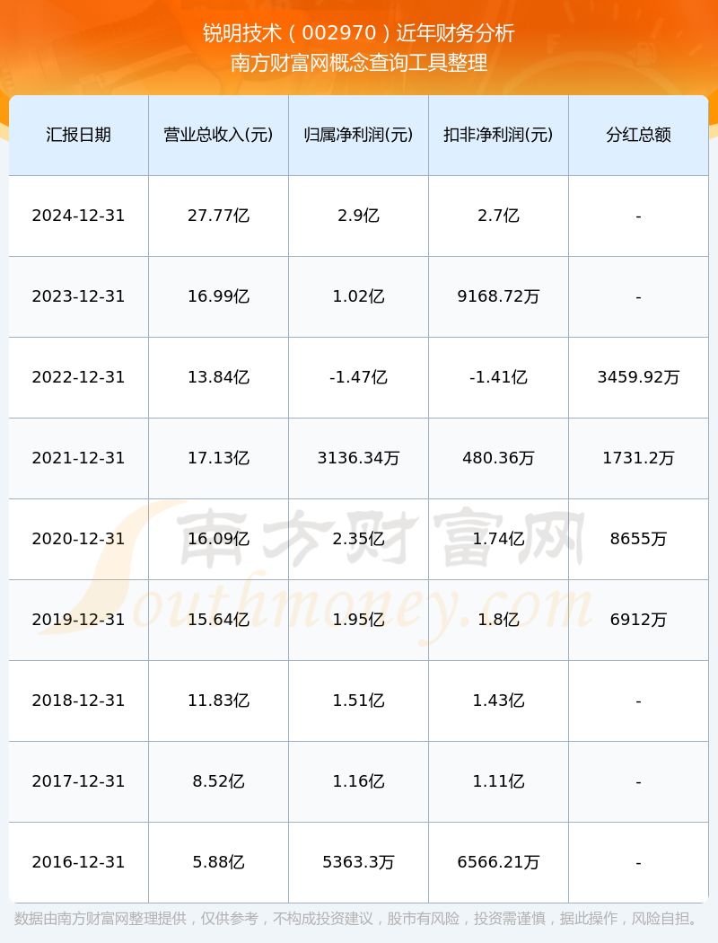 近年銳明技術(shù)分紅派息情況如下表所示: