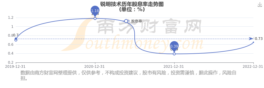 銳明技術(shù)歷年股息率走勢(shì)如下圖: