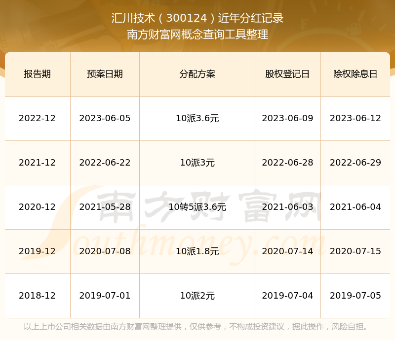 匯川技術(shù)歷年分紅派息情況如下表所示: