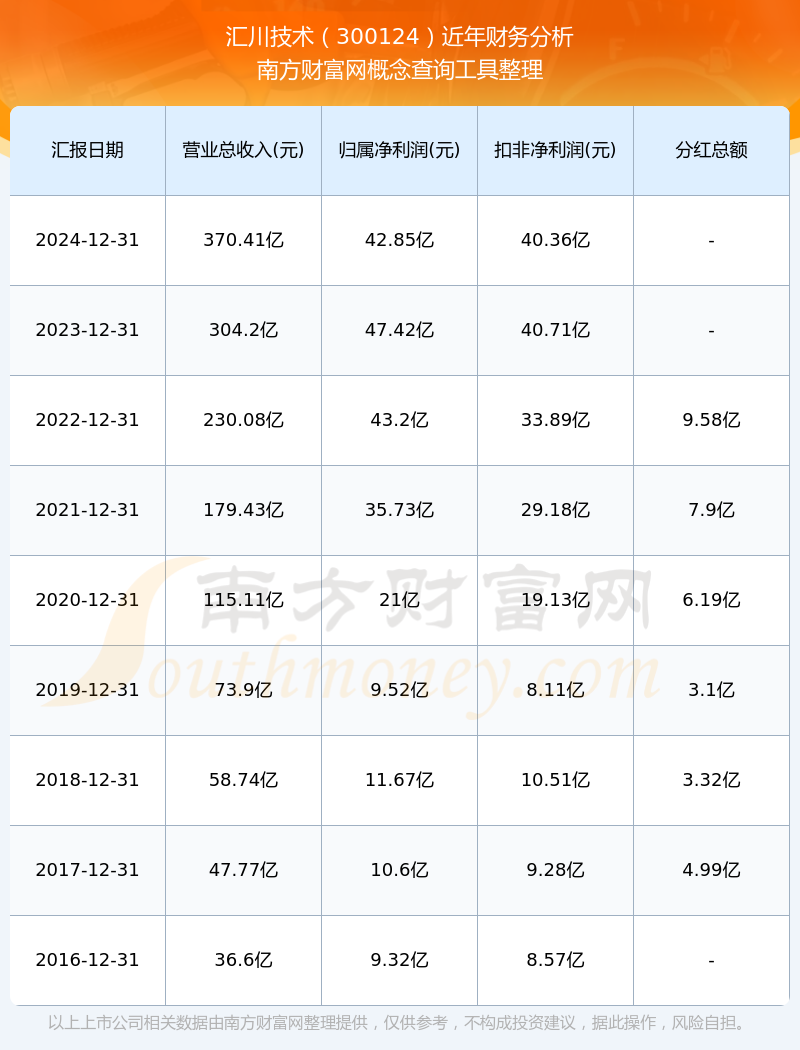 匯川技術(shù)公司2024年實(shí)現(xiàn)營(yíng)業(yè)收入370.41億元,同比增長(zhǎng)21.77%;凈利潤(rùn)42.85億元,同比增長(zhǎng)-9.62%;毛利率28.7%。