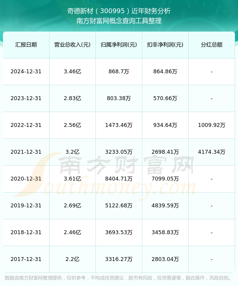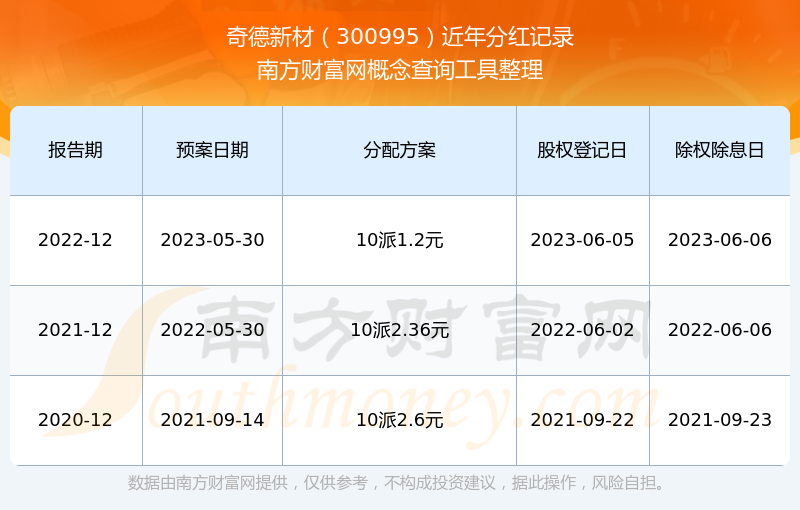 奇德新材最新一次公布的分紅方案:10派1.2元。