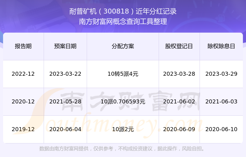 耐普礦機(jī)最新一次公布的分紅方案:10轉(zhuǎn)5派4元。