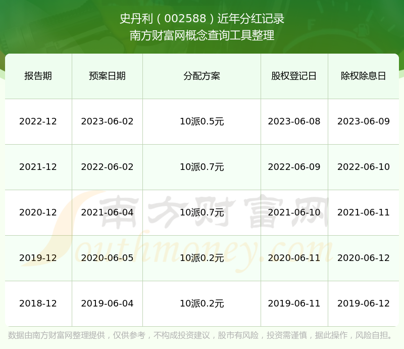 史丹利最新一次公布的分紅方案:10派0.5元。