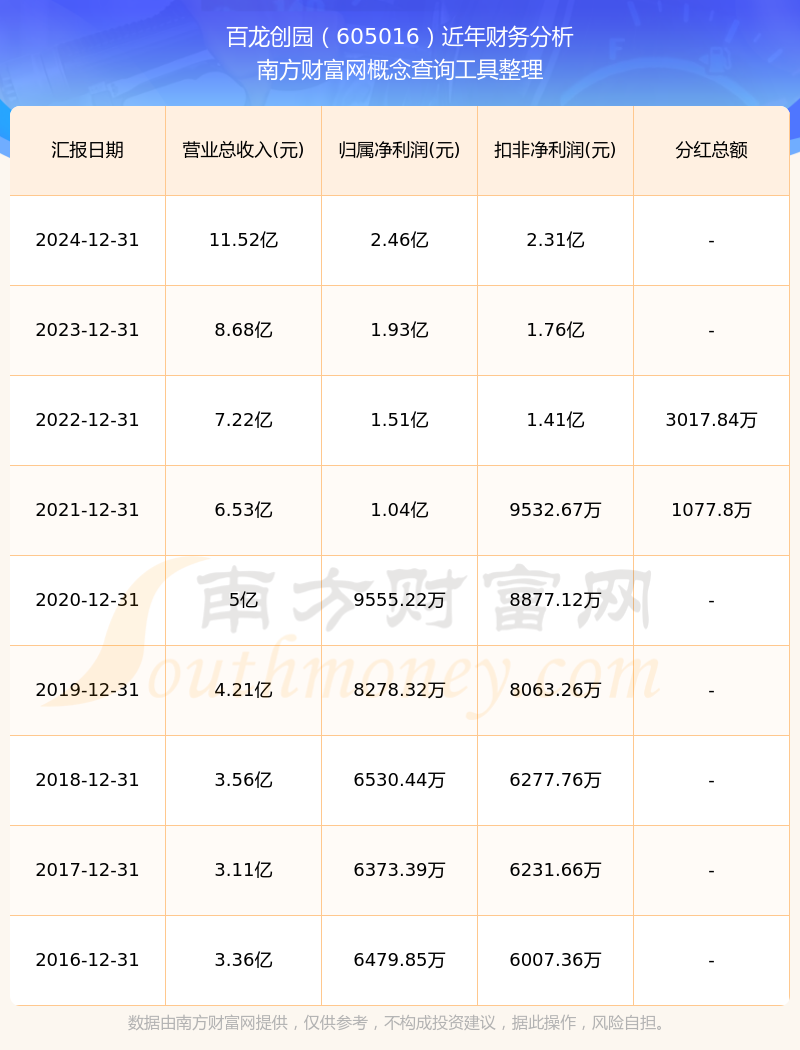 近年百龍創(chuàng)園分紅派息情況如下表所示: