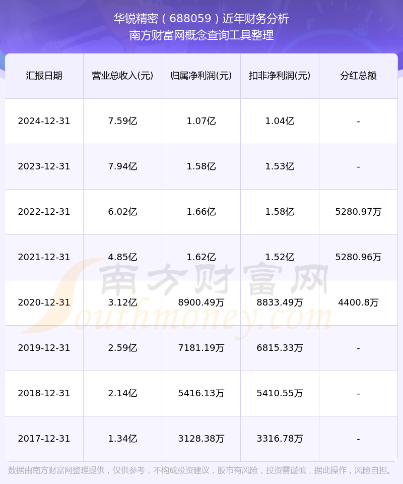華銳精密公司2024年實(shí)現(xiàn)營收7.59億元,凈利潤1.07億元,毛利率39.46%。