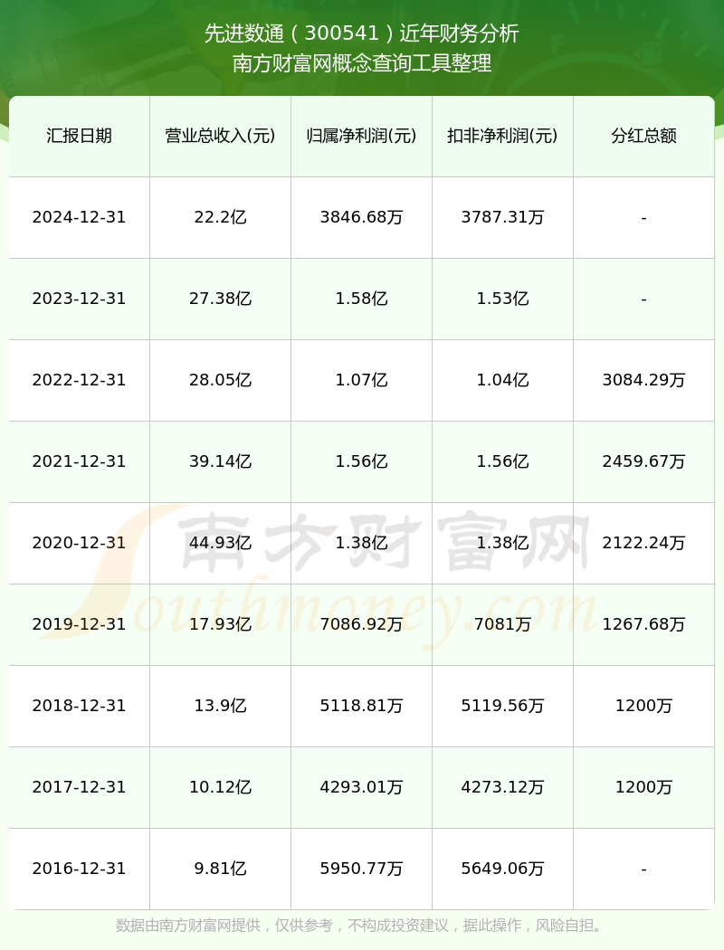 先進(jìn)數(shù)通2024年總營收22.2億,同比增長-18.92%;凈利潤3846.68萬,同比增長-75.64%;銷售毛利率17.93%。