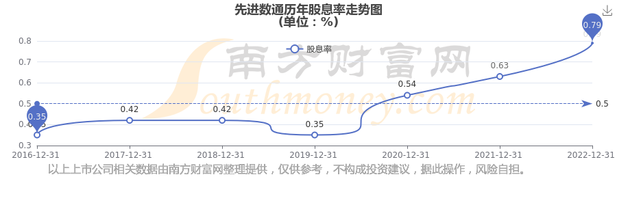 先進(jìn)數(shù)通歷年股息率走勢如下圖: