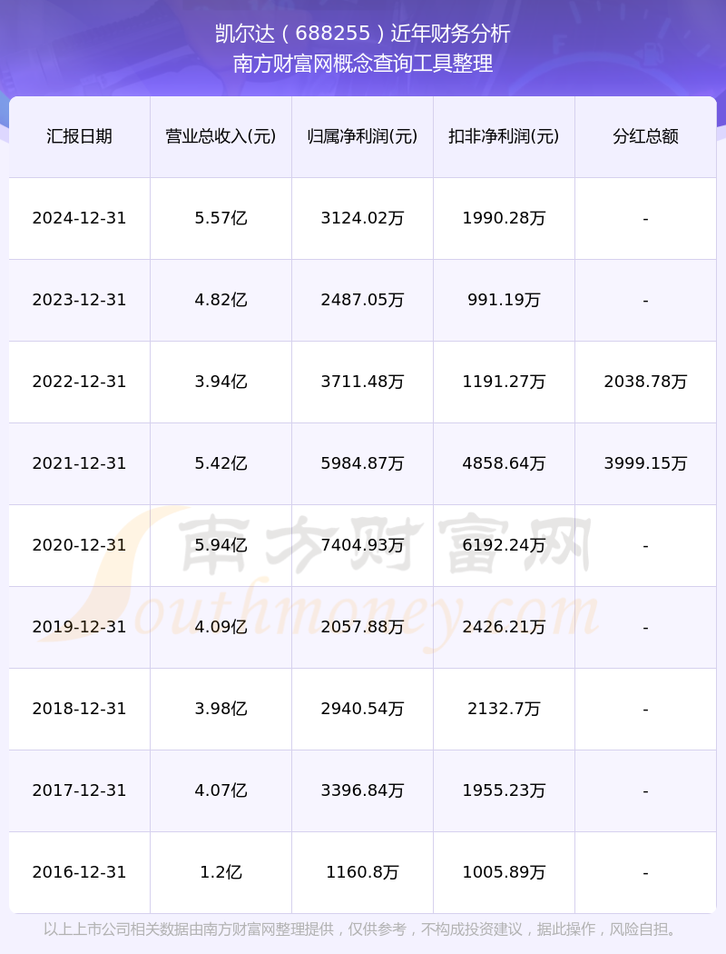 2024年凱爾達(dá)總營收5.57億,同比增長15.66%;凈利潤3124.02萬,同比增長25.61%;銷售毛利率20.43%。