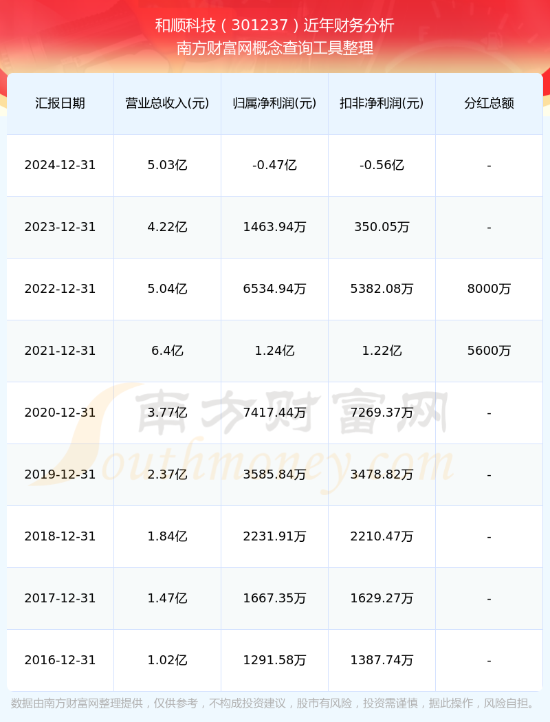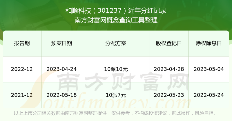 和順科技?xì)v年分紅派息情況如下表所示: