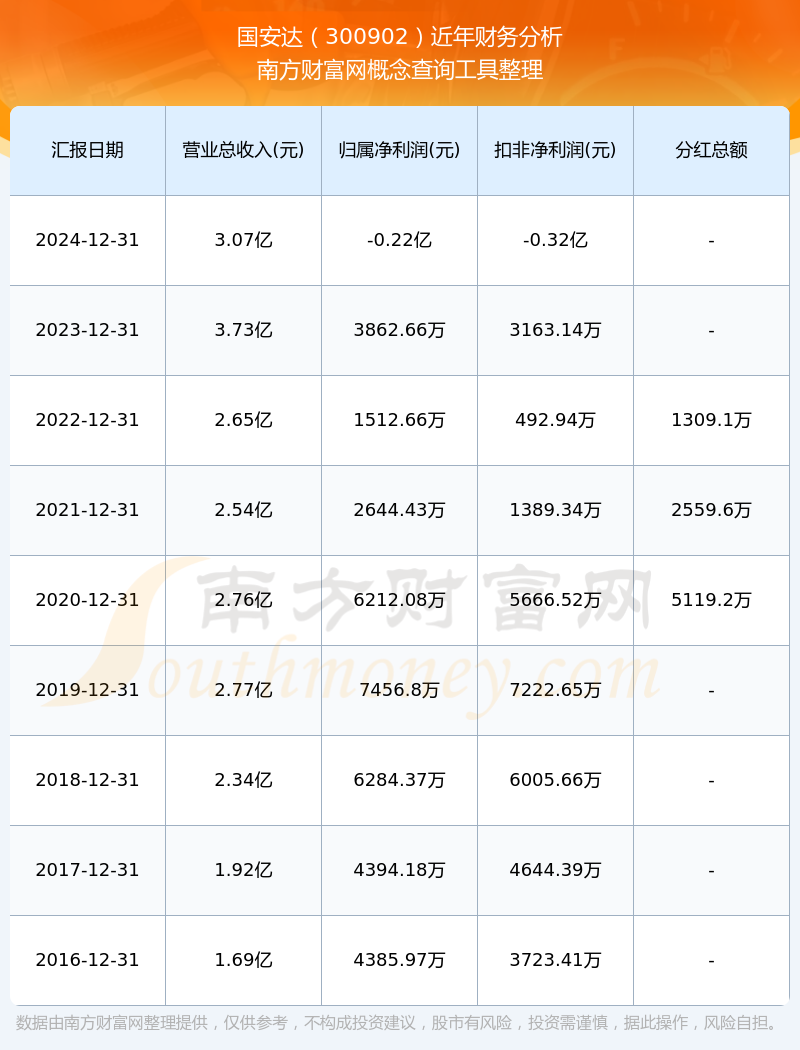 國(guó)安達(dá)歷年分紅派息情況如下表所示: