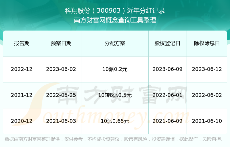 科翔股份最新一次公布的分紅方案:10派0.2元。