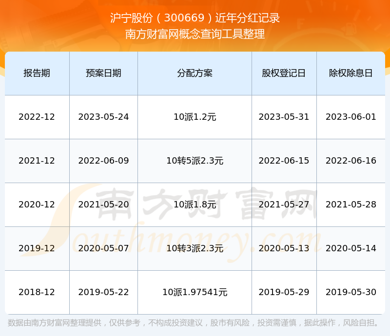 滬寧股份最新一次公布的分紅方案為10派1.2元。本次權(quán)益分派股權(quán)登記日為2023年5月31日,除權(quán)除息日為2023年6月1日,派息日為2023年6月1日。
